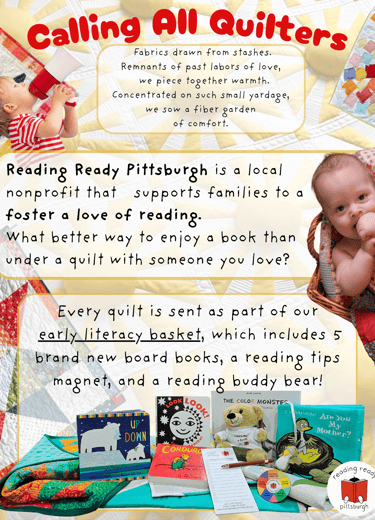 I am inviting QCE members to my studio on the second Wednesday of each month to work together on quilts for Reading Ready (flyer below).