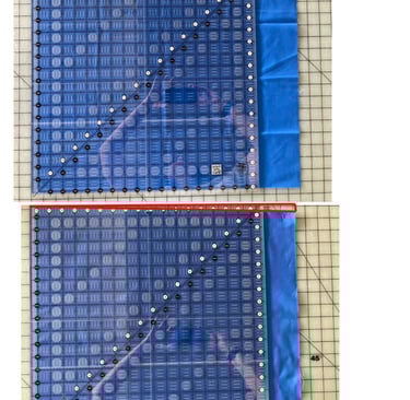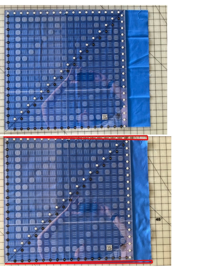 At first glance it looked like I didn't lose any of the 18" height. But the skew to the fabric surprised me. To make these edges perpendicular to the selvage, I will lose about half an inch on both top and bottom.